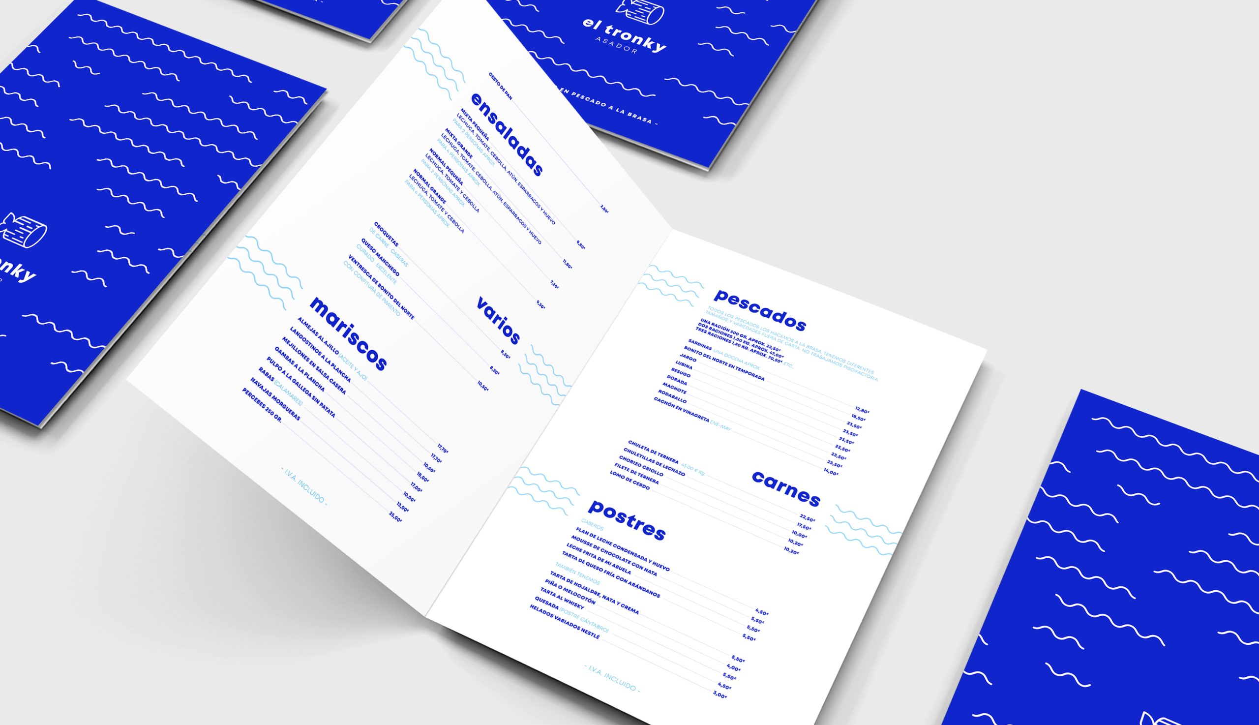 Trabajamos en la renovación de identidad corporativa, la realización de papelería corporativa y la creación de las cartas de menú y vinos para el Asador El Tronky.